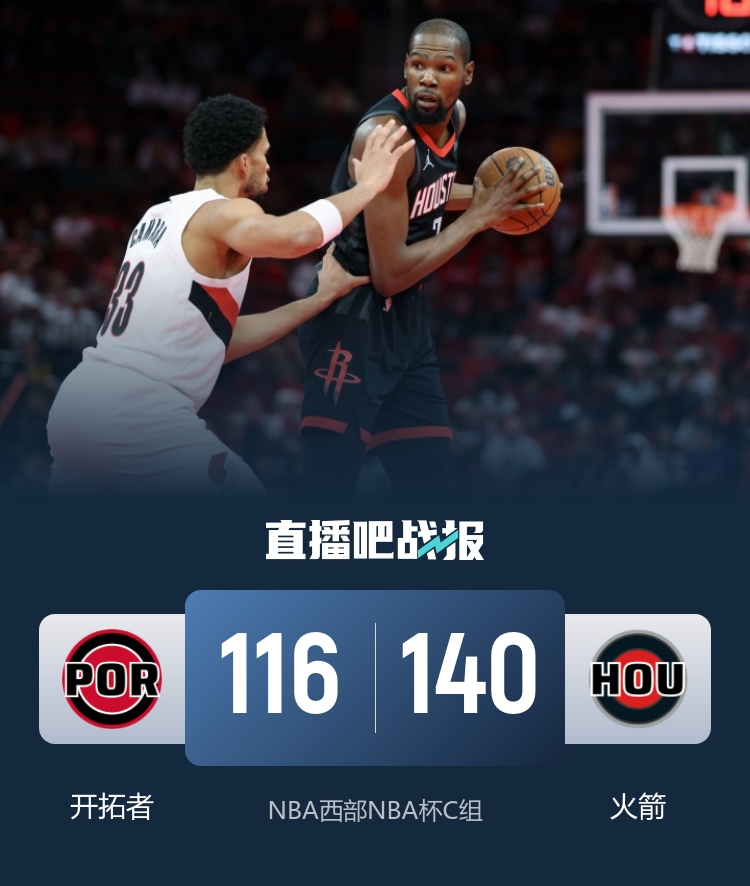 首节对决双方火力全开状态火热,开拓者单节砍下32分手感已经很不错了,但火箭在轮换阶段还能保持高强度火力并依靠一波20-6的攻势一举拉开9分优势;次节开拓者曾凭借8-0的攻势短暂反超比分,但火箭末节回敬11-3的攻势重新拉开9分领先进入下半场。休息归来火箭率先发难以一波24-10的攻势直接拉开23分的分差,开拓者随后及时苏醒回敬15-6的攻势止住颓势保留希望;末节火箭又是开局一波15-4的攻势再度拉开20分以上的优势,这之后开拓者没能再造威胁。最终,火箭主场大胜开拓者迎来杯赛首胜。